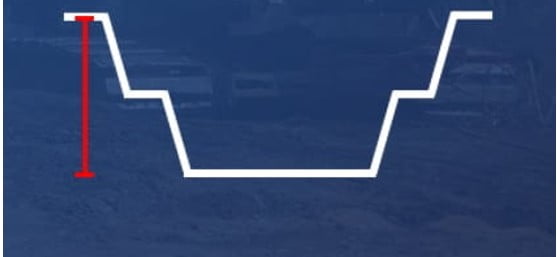 Ancho de fondo: Esto representa el área mínima en el fondo del pozo.. Debe mantener un ancho de fondo suficiente para garantizar la estabilidad del pozo y proporcionar suficiente espacio para las operaciones finales de excavación y transporte..