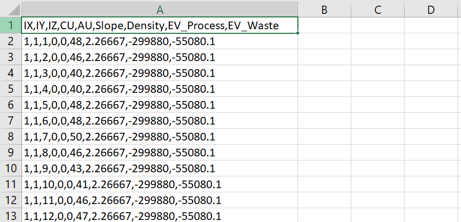. Por ejemplo, =X&",&Y&",&Z&",&Cu&",&Au&",&Density,Slope