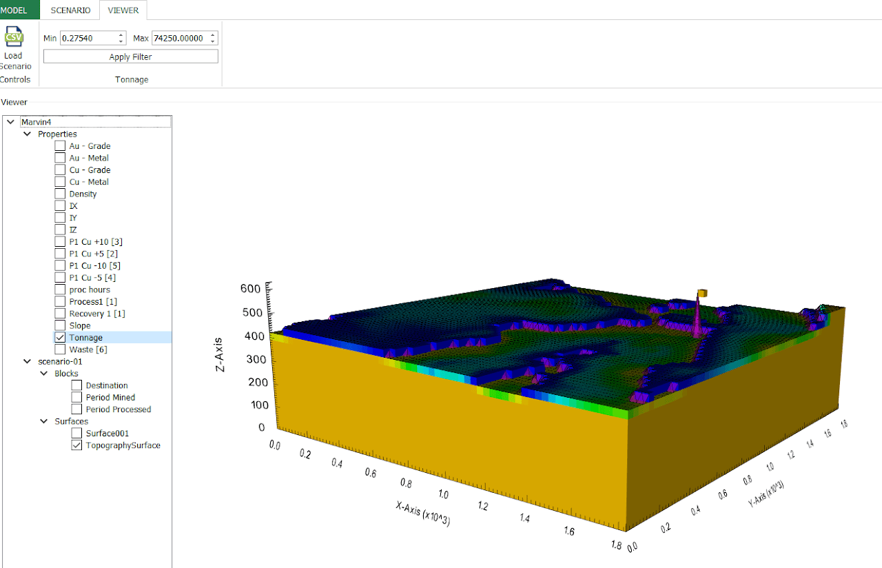 Compruebe si hay alguna ‘bloques flotantes‘ que no están conectados a la topografía del modelo, Como se muestra abajo. Estas regiones pueden afectar la optimización, entonces quitándolos podría ayudar a MiningMath a funcionar correctamente.