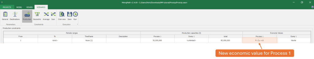 Let’s analyze the PriceUp scenario where the economic value of Process 1 changes (for more information about calculating economic values check the page here).