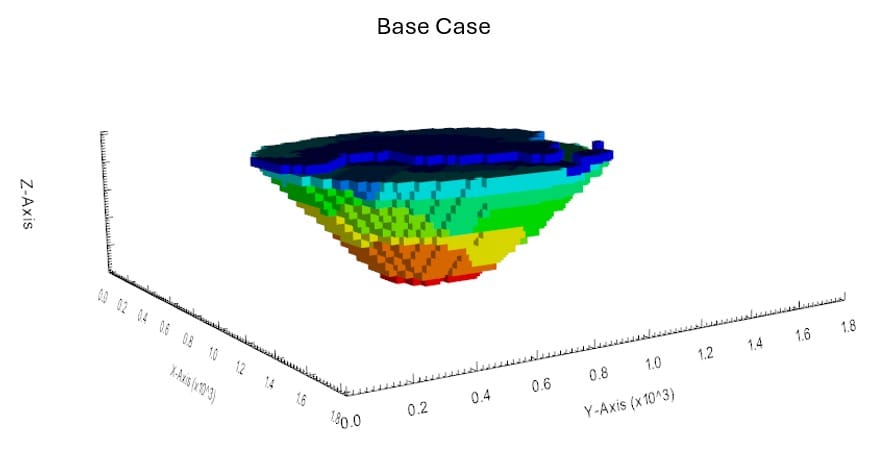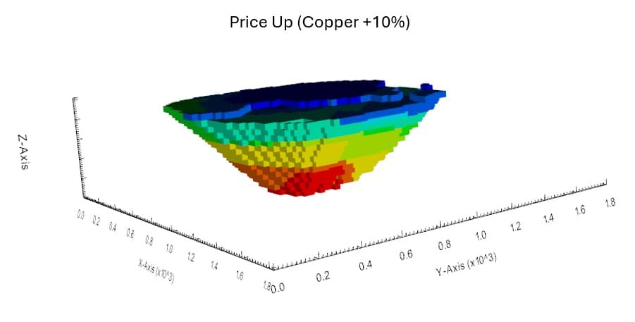 Naturalmente, Métricas clave como el VPN se ven afectadas. Al examinar tanto el VPN como el movimiento total, Podemos ver que se generó una secuencia de minería diferente., Prolongar la vida útil de la mina por un período.