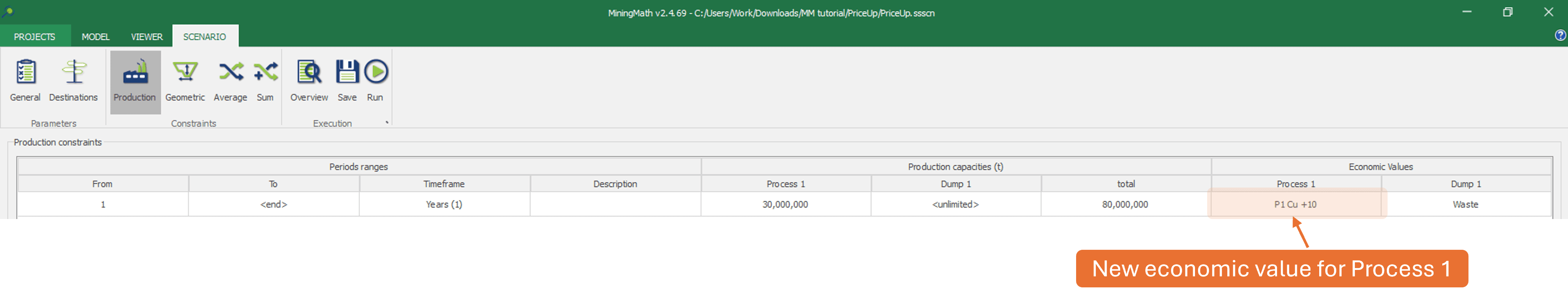 Analicemos el escenario de PriceUp donde el valor económico del Proceso 1 cambios (Para obtener más información sobre el cálculo de valores económicos, consulte la página aquí).