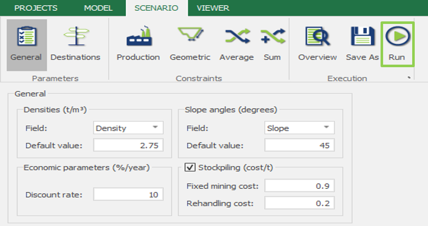 La ejecución eficiente de escenarios es esencial para evaluar alternativas de planificación minera en condiciones económicas o técnicas cambiantes.. Esta guía muestra cómo ejecutar un modelo dentro de MiningMath utilizando la interfaz de usuario o scripts automatizados..