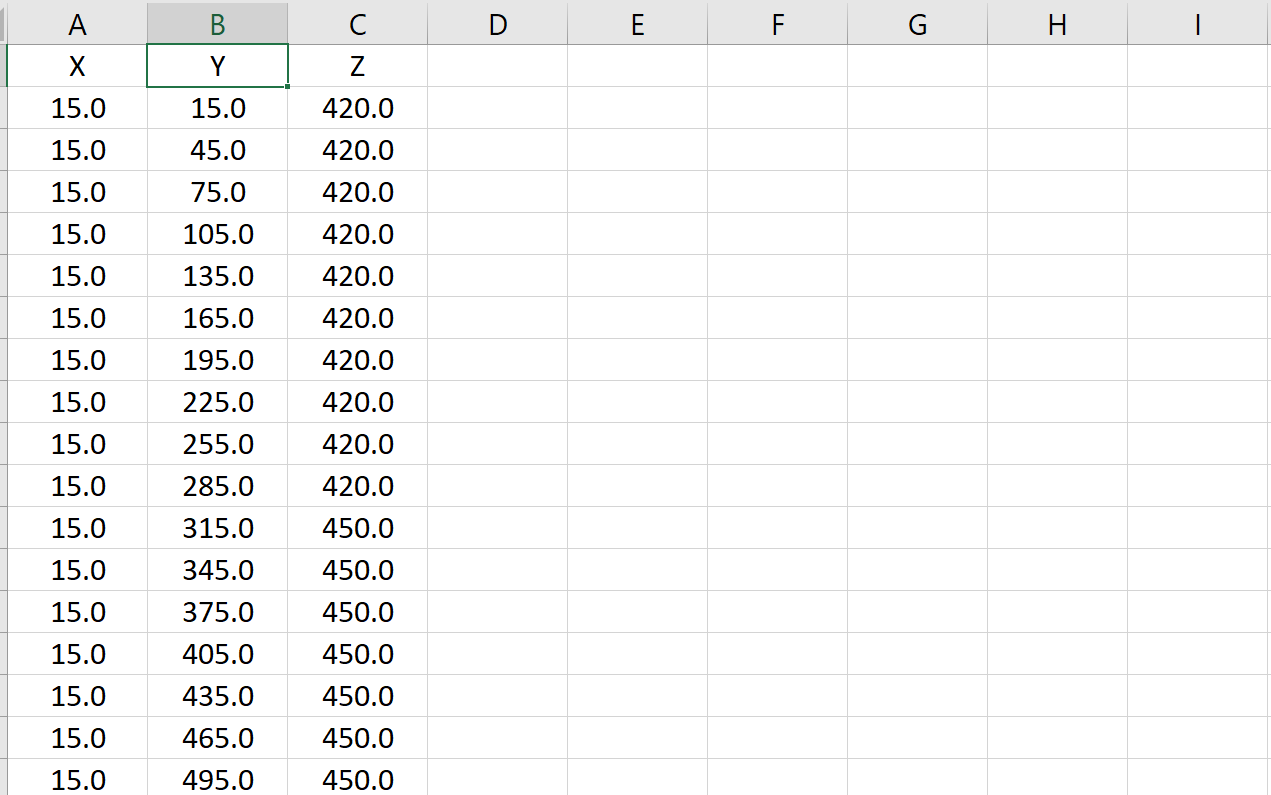 Superficie.CSV: Grilla de puntos generados a través del tajo cada periodo.