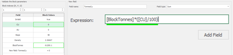 • Toneladas Cu = [BlockTonnes]*([CU]/100)