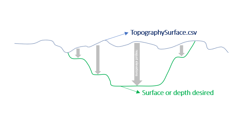 • Usando solo Excel o cualquier programa de hoja de cálculo. Abre el TopografíaSuperficie.csv, filtrar las regiones en X e Y que desea cambiar la elevación y manipularlos.