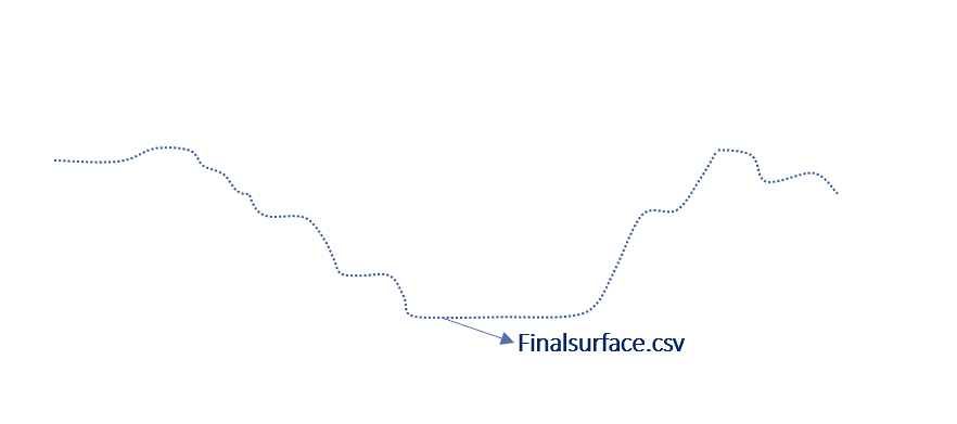 • Importar el TopografíaSuperficie.csv (Figura 5), que es una grilla de puntos, en el CAD de tu Paquete Minero. El archivo CSV mencionado puede ser obtenido por escenario de validacións o cualquier otra ejecución en MiningMath.