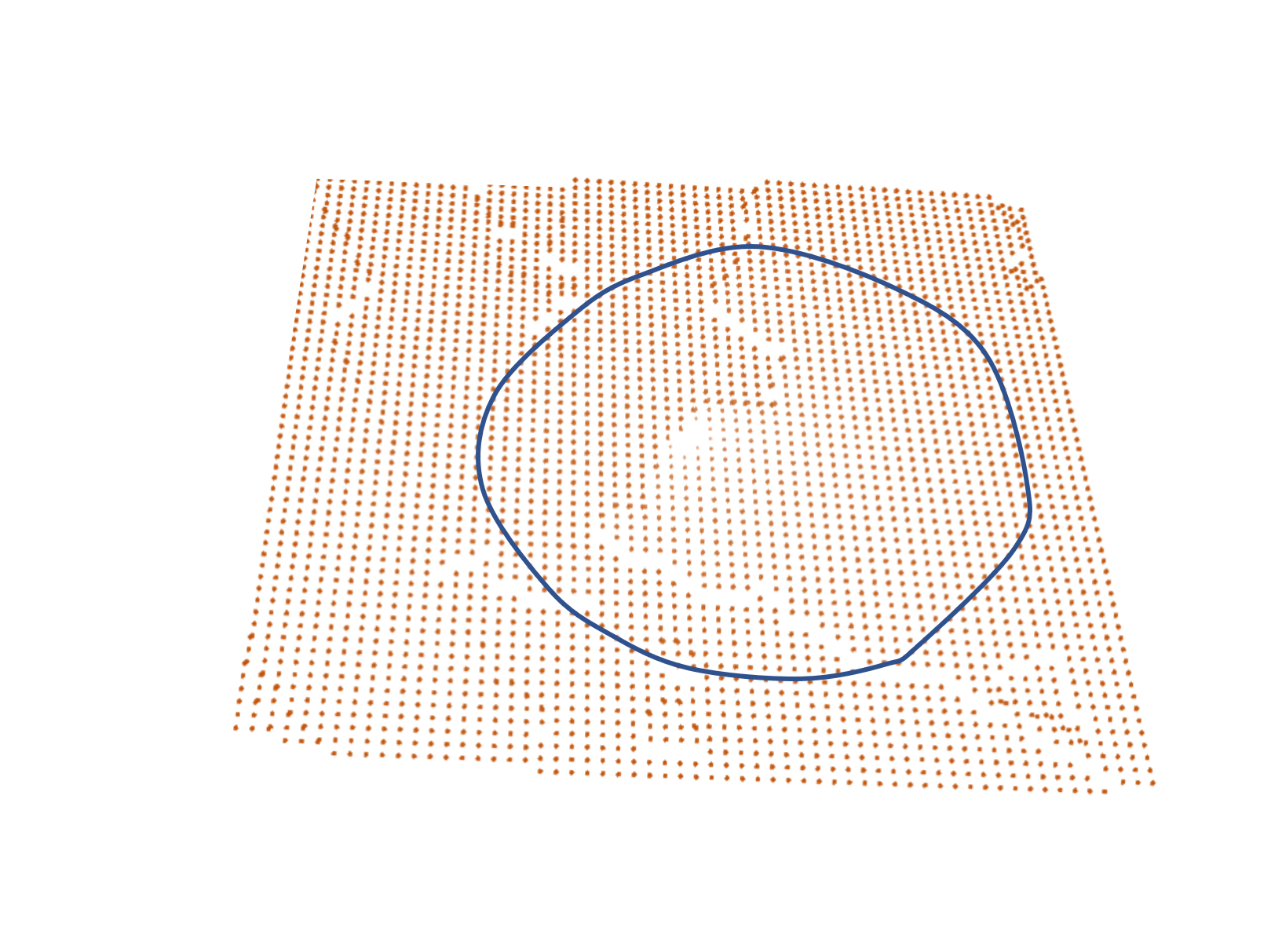• Usar una polilínea (Figura 6) para dibujar la región, seleccione los puntos dentro del polígono dibujado, y encuentre la opción en su paquete de minería que le permite colócalos a la altura que quieras.