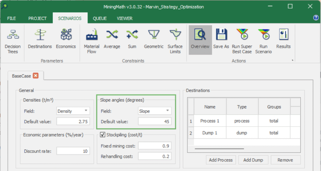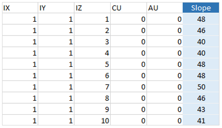 Para escenarios que requieren suposiciones de pendientes de múltiples variables, Puedes preparar columnas adicionales (p.ej, Pendiente 1, Pendiente 2, … Pendiente N) en el modelo de bloque antes de la importación. Esta configuración le permite seleccionar los datos de pendiente adecuados para cada escenario directamente a través de la interfaz., eliminando la necesidad de editar y volver a importar repetidamente el modelo de bloques.