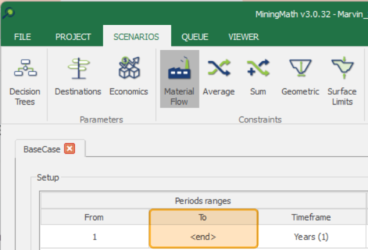 MiningMath le permite guiar la optimización ajustando solo los valores Z de sus superficies topográficas generadas, preservando la alineación y el formato. Este enfoque simplifica la creación de restricciones de minería de fuerza o restricción y facilita la integración con herramientas externas.. Proporcionar flexibilidad en el período final (usando <end>) permite que el modelo optimice los recuentos de períodos. Este método mejora el control sobre áreas mineras más profundas al tiempo que mantiene la coherencia con la lógica geométrica de MiningMath..