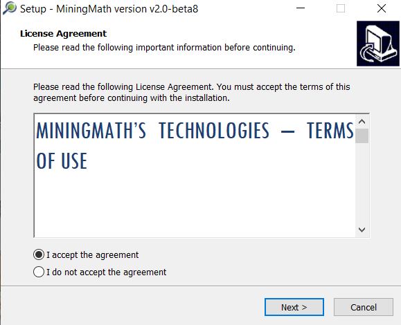 Seleccione el campo "tengo un codigo de activacion" y pegue el código de licencia proporcionado por MiningMath.