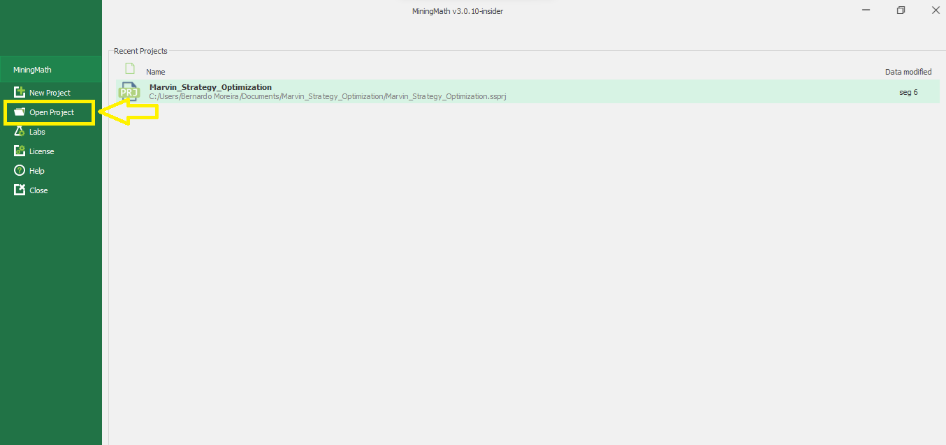 En el menú de la izquierda, haga clic en Proyecto abierto.