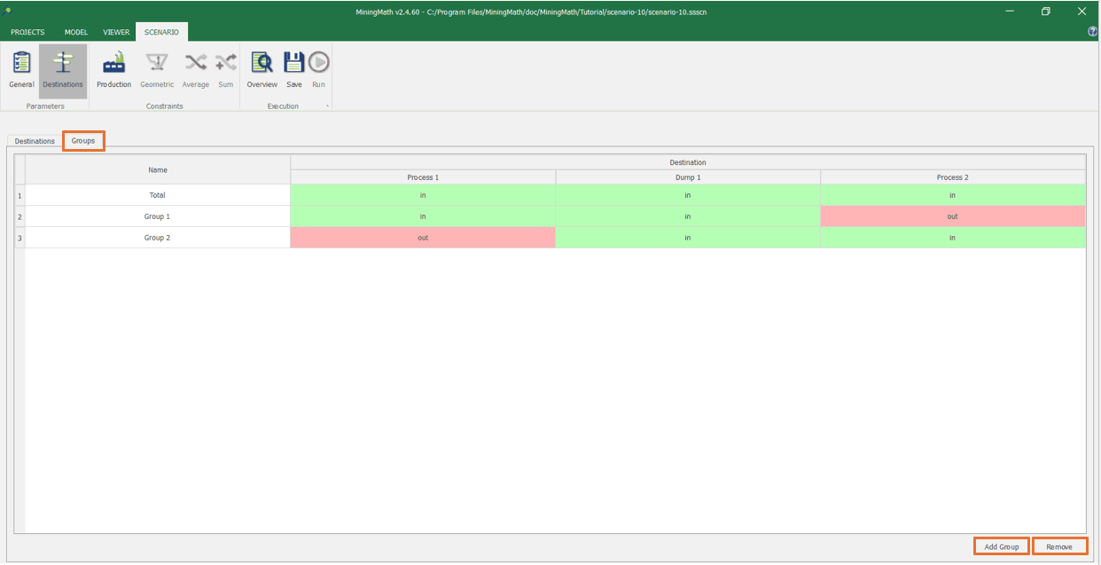 Al trabajar con más de dos destinos, Puedes agrupar determinados destinos en diferentes categorías. Esto es especialmente útil si necesita limitar la capacidad de producción en destinos agrupados.. Para definir grupos, simplemente cambia a la Grupos pestaña.