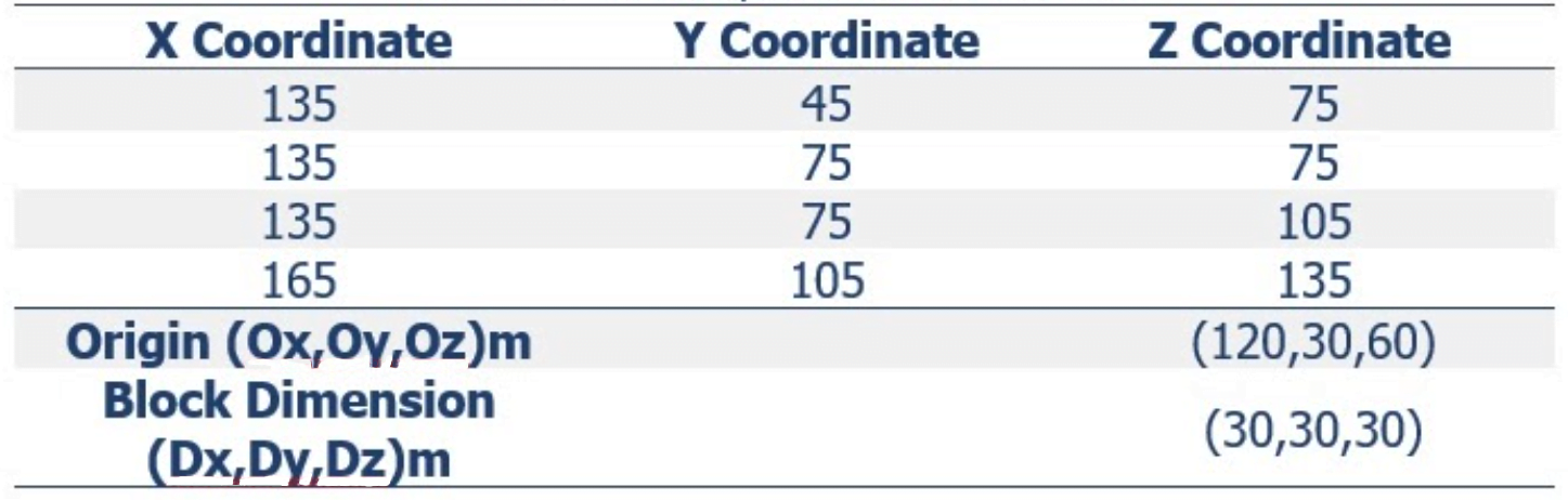 Sin embargo, si el modelo de bloques contiene información georreferenciada basada en coordenadas, podrían convertirse en índices antes de importarse a MiningMath.