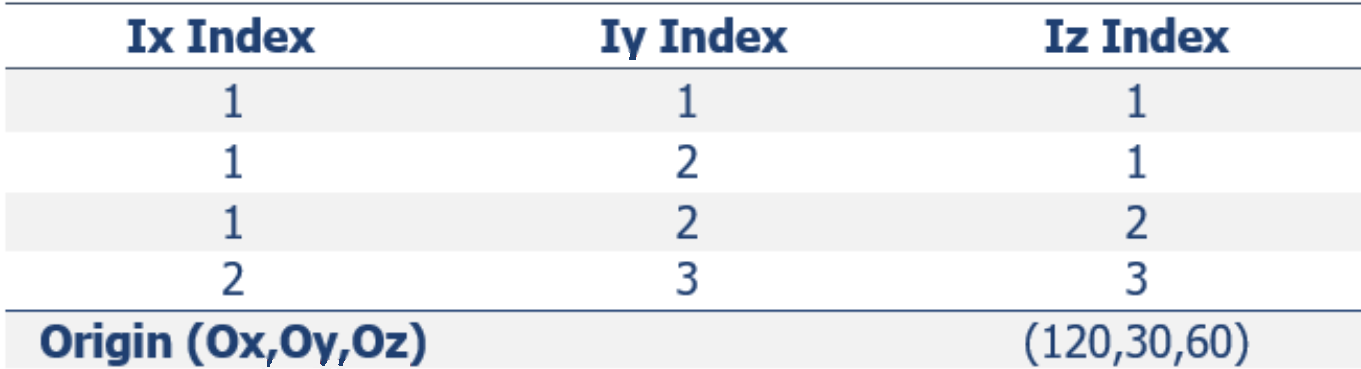 Los índices de cada bloque representan su posición en el modelo., indicando en que columna, línea, y nivel (IX, IY, y IZ) es.