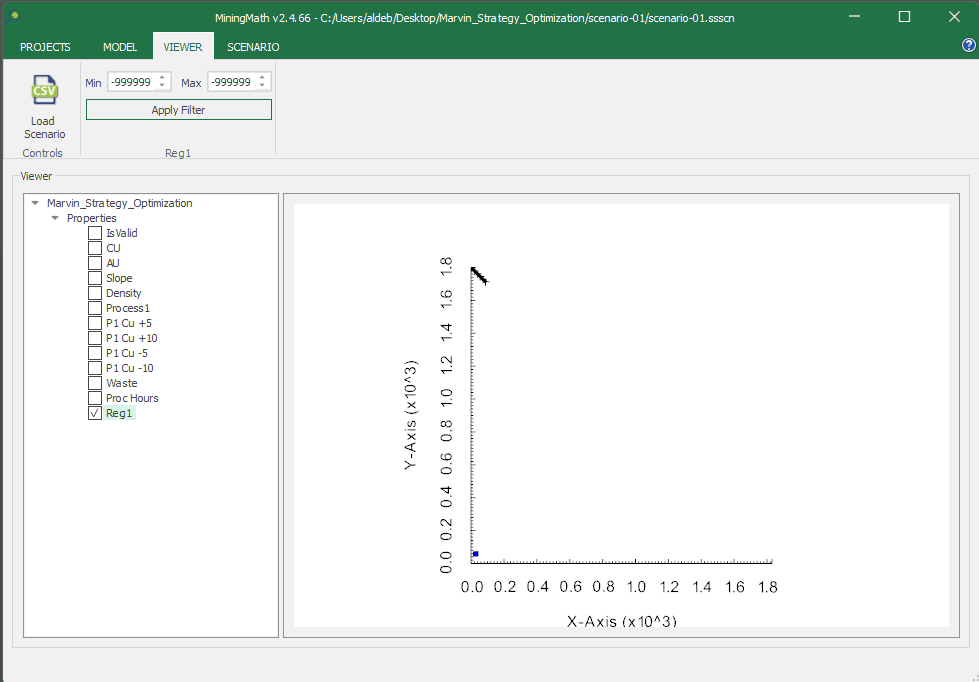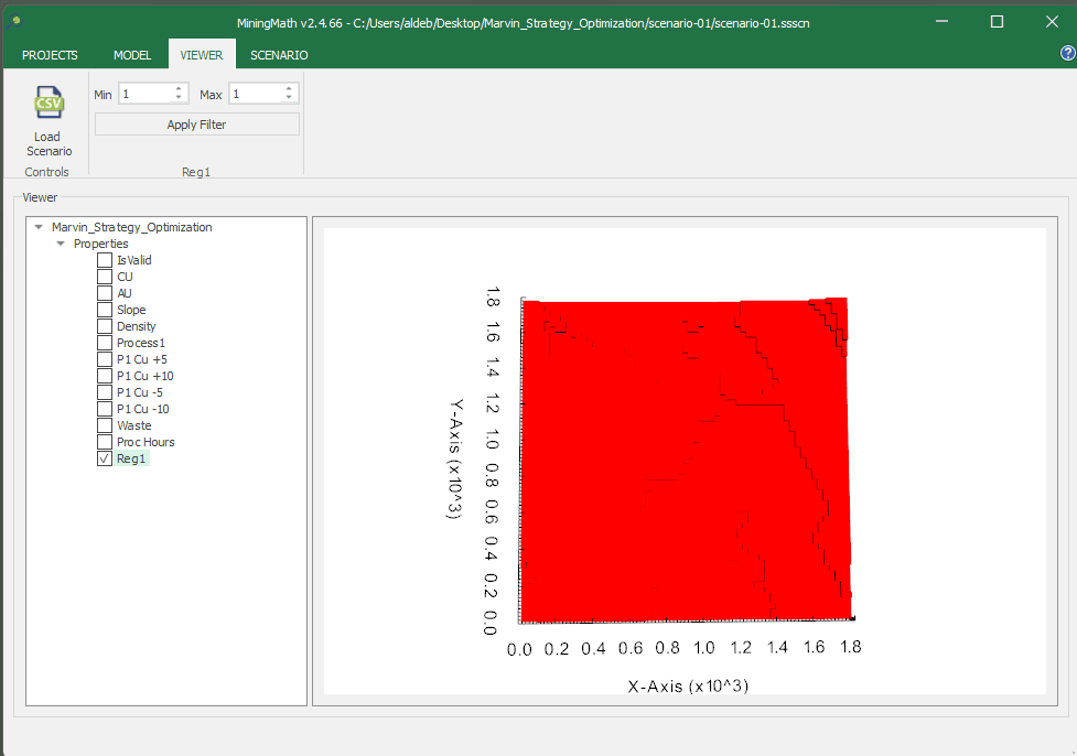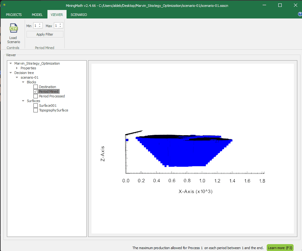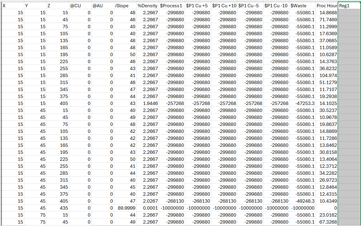 MiningMath también permite la optimización de pozos, con el objetivo de maximizar el flujo de efectivo no descontado, considerando los costos fijos y todas las restricciones deseadas. Esto permite una evaluación de viabilidad económica de regiones específicas a lo largo de la vida útil del proyecto.. Para hacer esto, Se debe utilizar el campo de decisión binario, que requieren configuraciones adicionales en el modelo de bloques y el escenario de optimización del pozo.