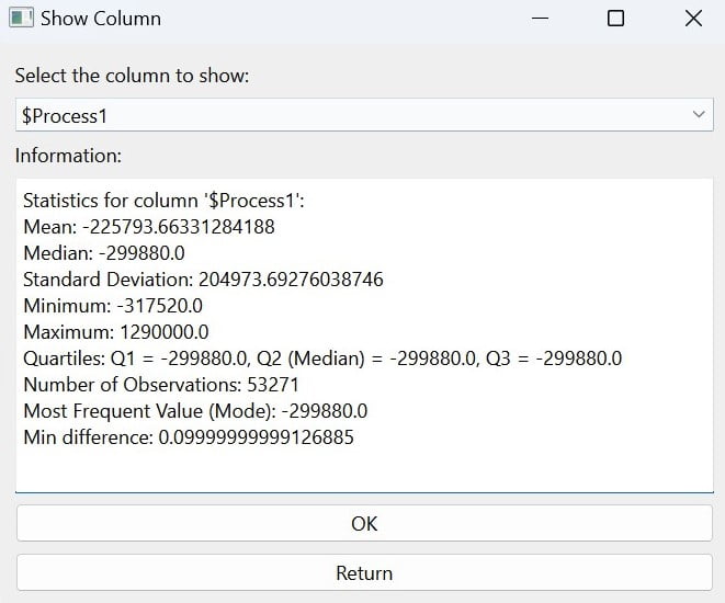 Una vez seleccionado un archivo, Tendrás la opción de agregar o eliminar columnas, obtener estadísticas de columnas, y guardar columnas.