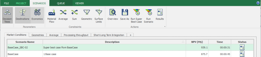 Agregar restricciones adicionales puede aumentar el tiempo de ejecución. Para ejecutar escenarios complejos, it’s recommended to use a powerful machine. Para facilitar las pruebas y el análisis de múltiples escenarios., MiningMath now includes a new queuing system (Descárgalo aquí).