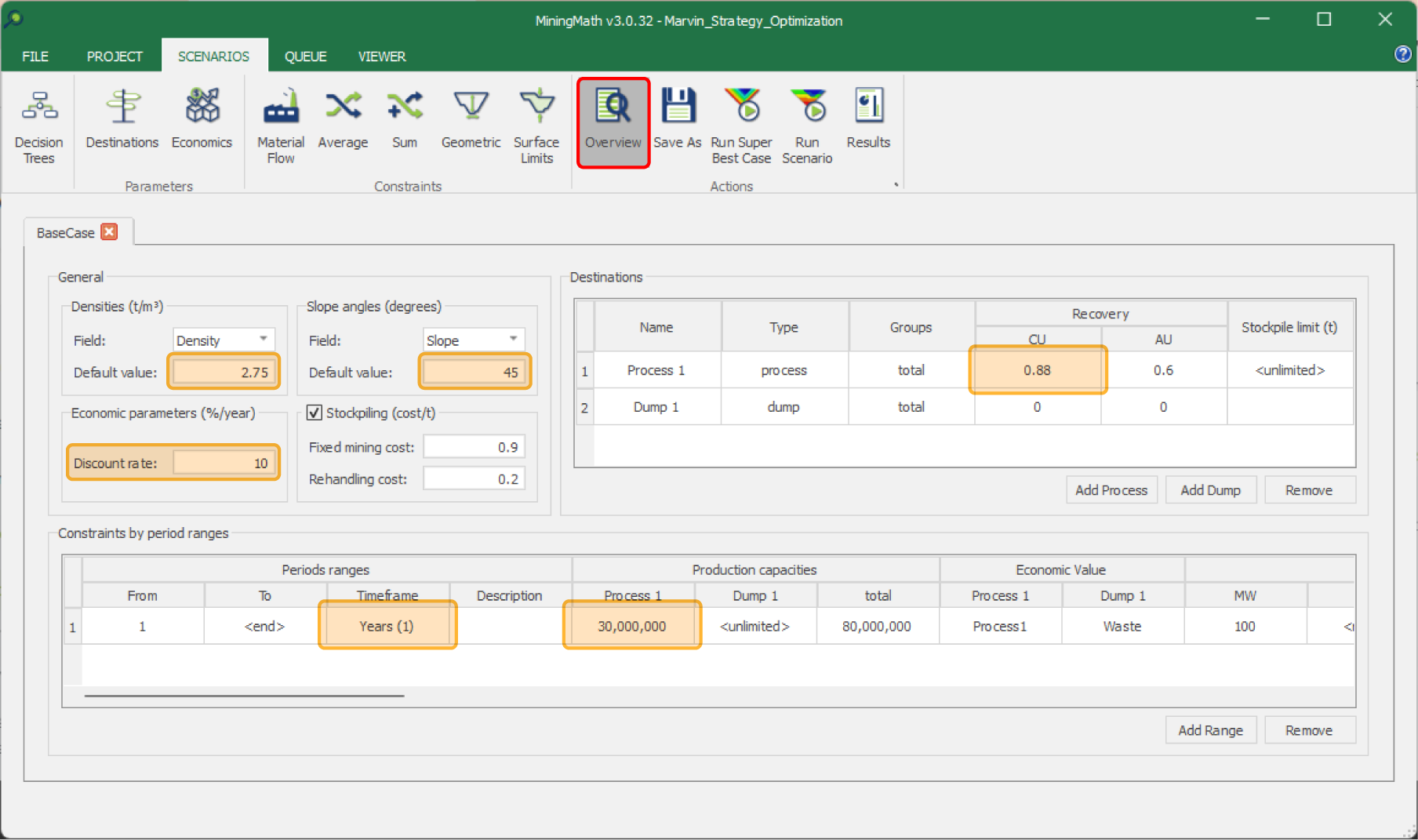 Depending on your block model and specificities of your project, Es posible que sea necesario especificar parámetros adicionales.. Por ejemplo, Si tiene varios destinos, estos se pueden agregar para una optimización adecuada del destino..