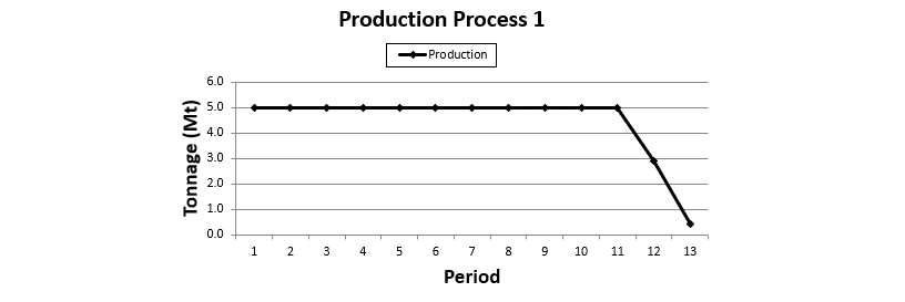 • Restricciones como los objetivos de producción y velocidad de avance vertical debe estar alineado con los intervalos de tiempo elegidos.