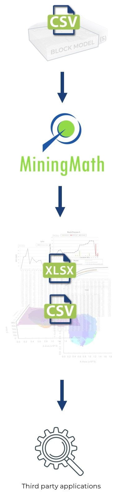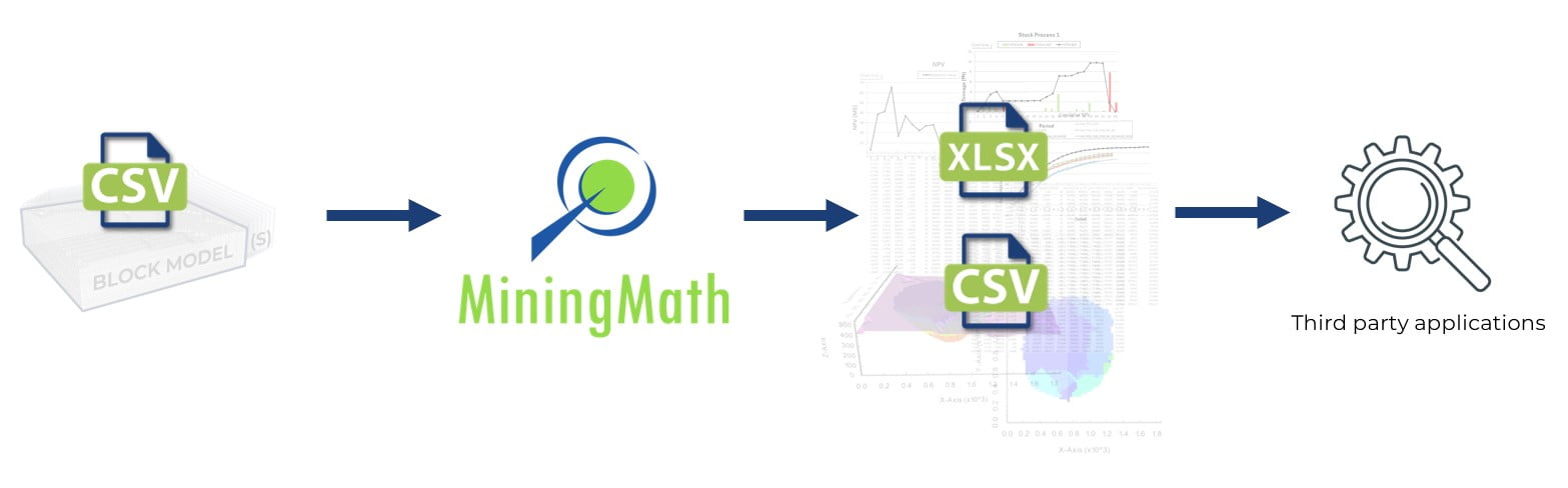 MiningMath no necesariamente compite con otros paquetes de optimización de minas diseñados para abordar uno o más de estos desafíos.. En cambio, Le brinda la flexibilidad de elegir el flujo de trabajo que mejor se adapte a sus requisitos..