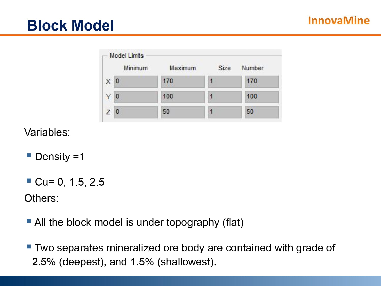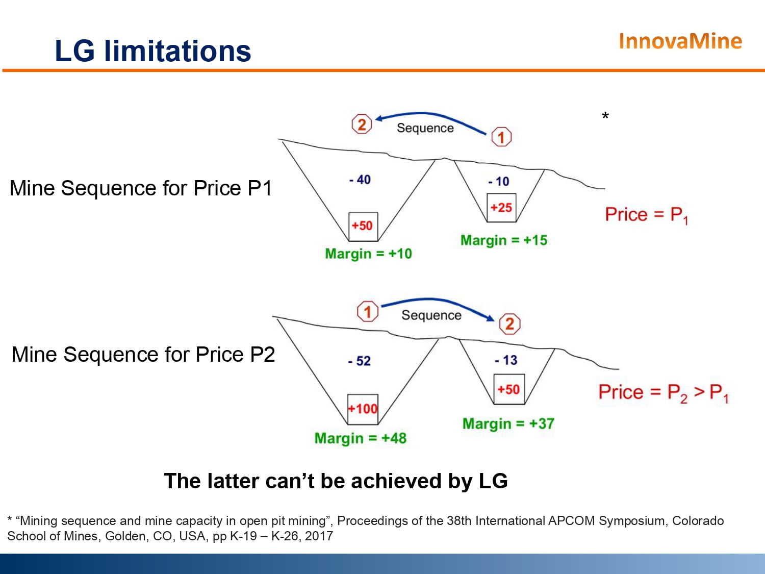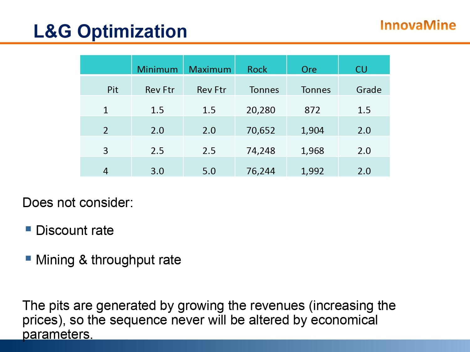 La siguiente presentación fue realizada porInnovaMine. en este estudio, se creó un modelo de bloques pequeños para mostrar lalimitaciones de Pit Optimization realizado a través de Lerchs-Grossmann