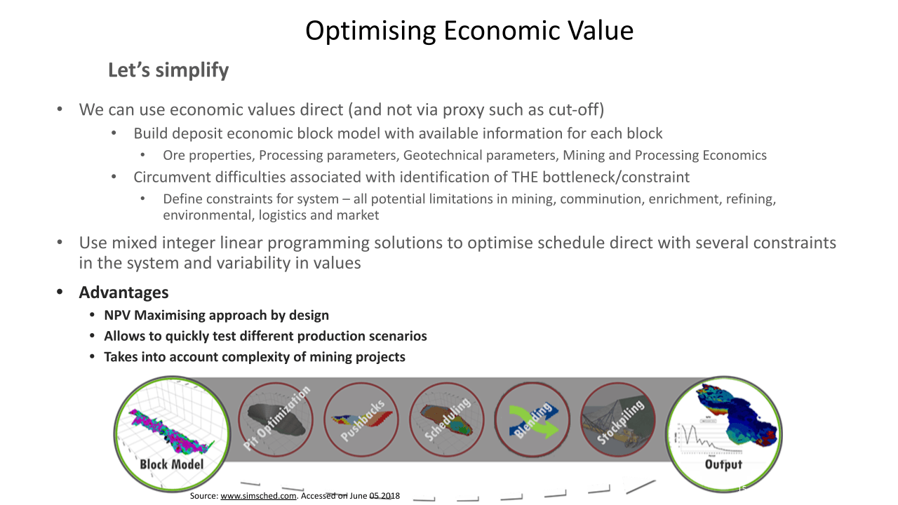 Planificación Minera Convencional: Funciones de beneficio. MSc Alexandre Marinho (MineríaMatemáticas)