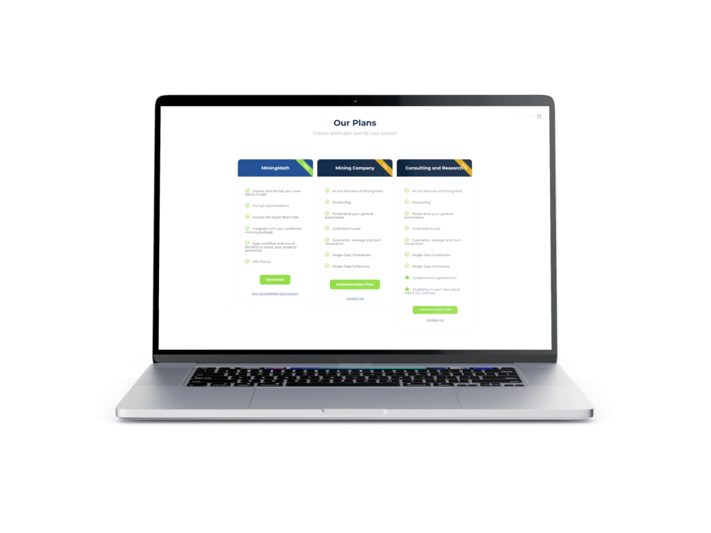 Seeking to purchase your own MiningMath FULL license? Our commercial plans are crafted to meet your specific needs, with collaboration and partnership opportunities you can’t miss!